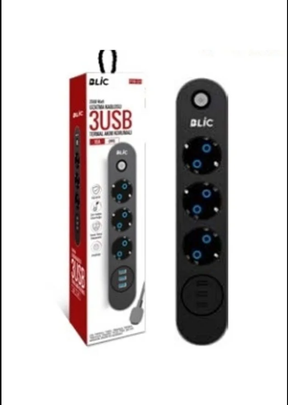 TERMAL AKIM KORUMALI PRİZ ÜZERİNDE 3 ADET USB GİRİŞİ/ 3 ADET PRİZ GİRİŞİ MEVCUTTUR.